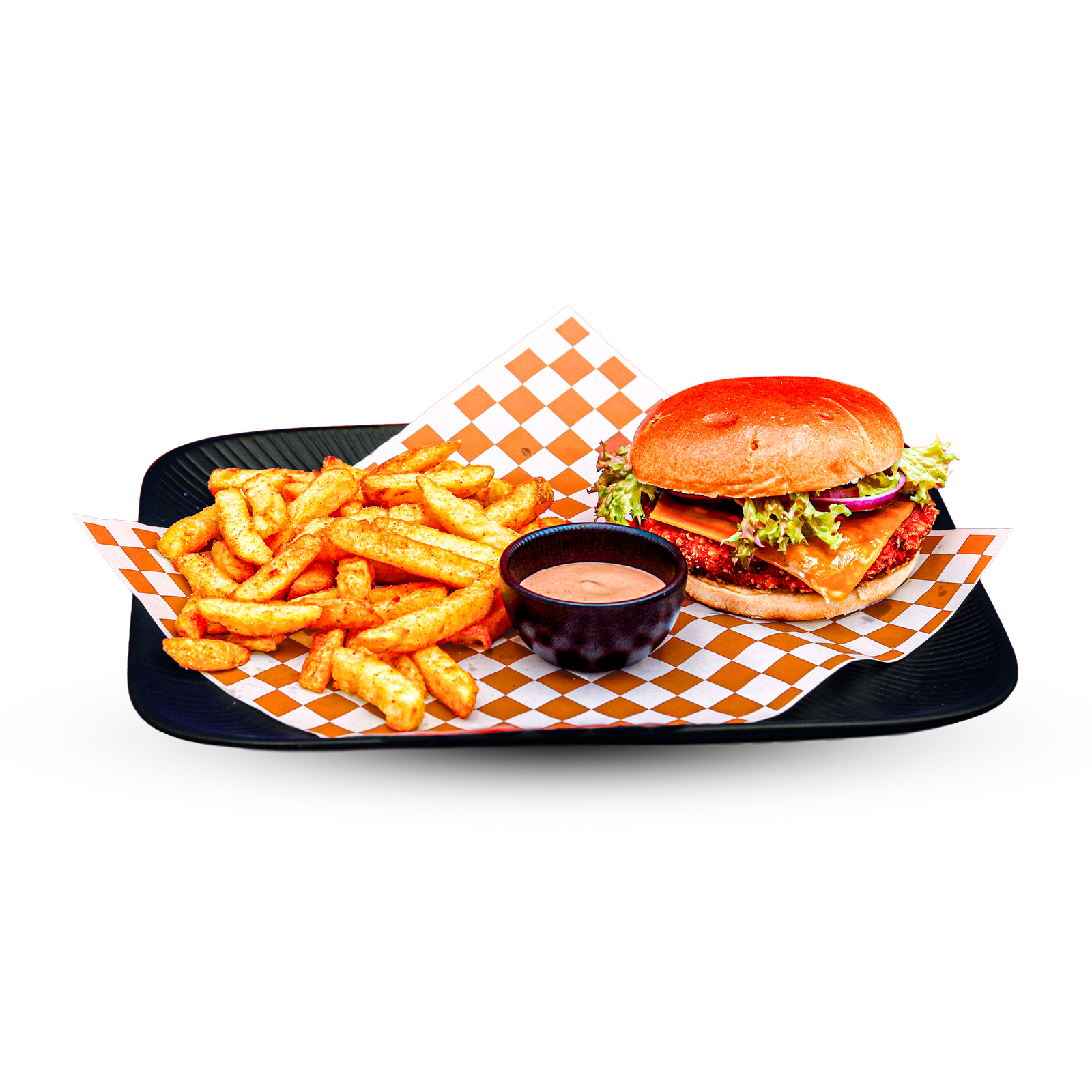 Hausgemachte Sauce (scharf), geschmolzener Cheddarkäse,